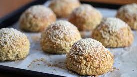 - Ha bakepapir på en stekeplate. Form deigen til 8 rundstykker som legges på platen.
